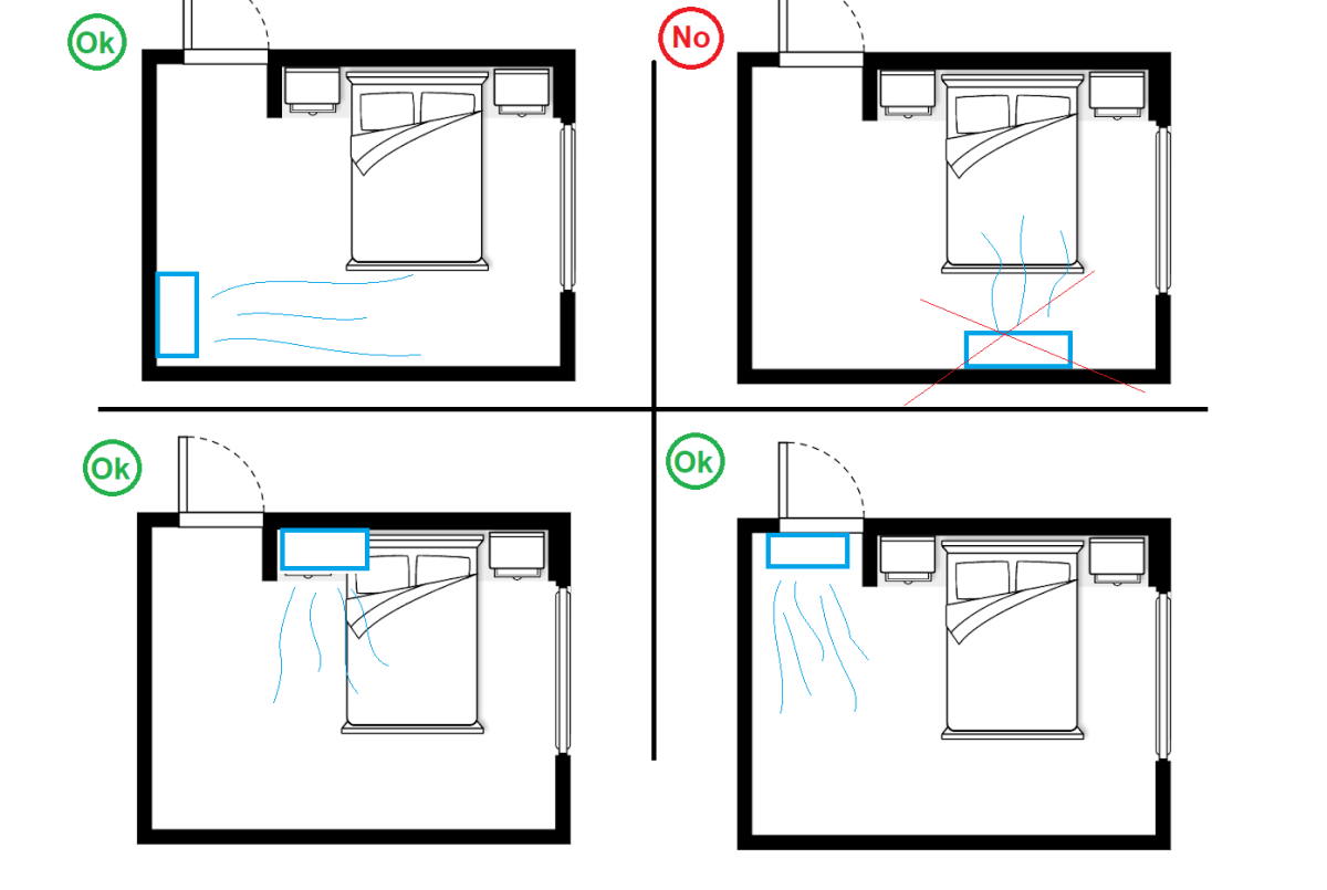 - Не над кроватью или рабочим местом - чтобы холодный воздух не дул на людей
