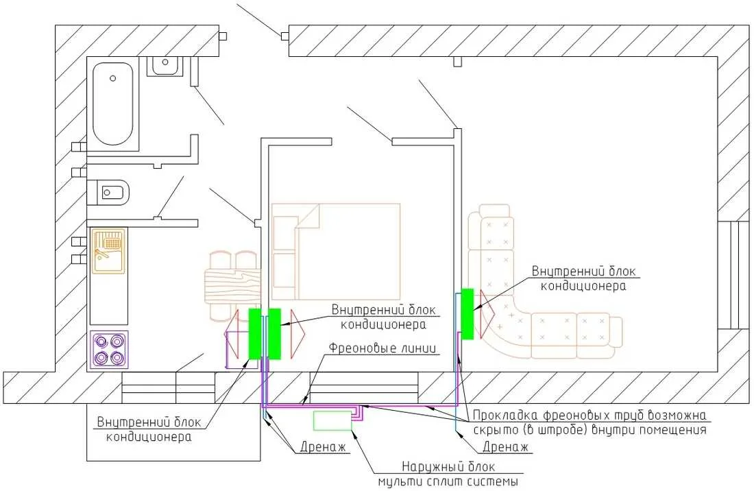 Решение: планируйте до расстановки мебели - "Экономия на монтаже" - утечки фреона, конденсат на стенах