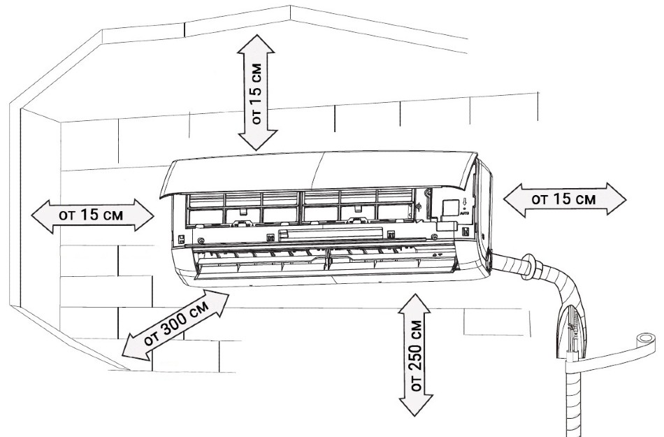 - Минимум 10 см от потолка - для нормальной циркуляции воздуха